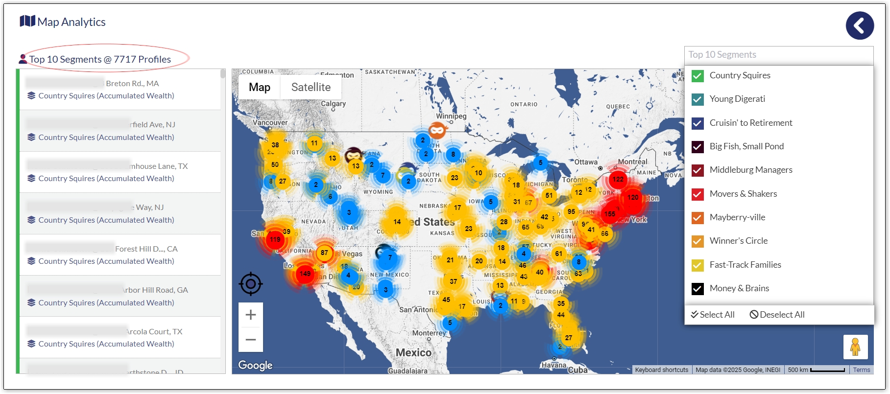 Segment Ninja’s geospatial mapping tool reveals where your top segments live, enabling hyper-local targeting. Ideal for geo-targeting and optimizing social, paid, direct mail, outdoor and other investments.